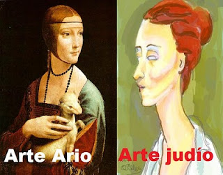 El arte es la representación más profunda del alma y mediante esa virtud podemos apreciar la genialidad y divinidad de una raza entera, también podemos observar las abominables obras hechas por los judíos y por lo tanto a través de su arte degenerado observamos su depravación y diabólica naturaleza, es decir una malformación de la perfección y absolutismo ario.